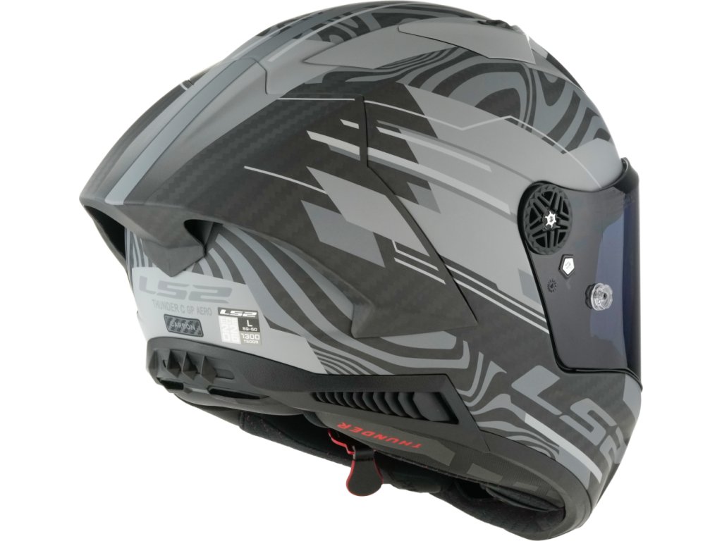 Špičková športová karbón-aramidová prilba Thunder C výrazne zvyšuje úroveň v sortiment high-endových prilieb. Extrémne pevná a ľahká škrupina z 6K karbónu je navyše vystužená aramidom (6K karbon - 6000 karbónových vlákien v jednom prameni). Najkvalitnejší mechanizmus aretácie plexi na svete je 100% kovový pre úplne novú skúsenosť s ovládaním a zaistením plexi. Technológia dvojkomponentného vstrekovania umožnila vytvoriť tesnenie plexi z dvoch rôznych materiálov pre najlepšie tesnenie proti dažďu. S dvoma plexi v cene (číre a tmavé) a príjemným antimikrobiálnym interiérom prináša Thunder C ďalšie výhody pre náročných jazdcov, ktorí hľadajú vysokú kvalitu, bezpečnosť a komfort.