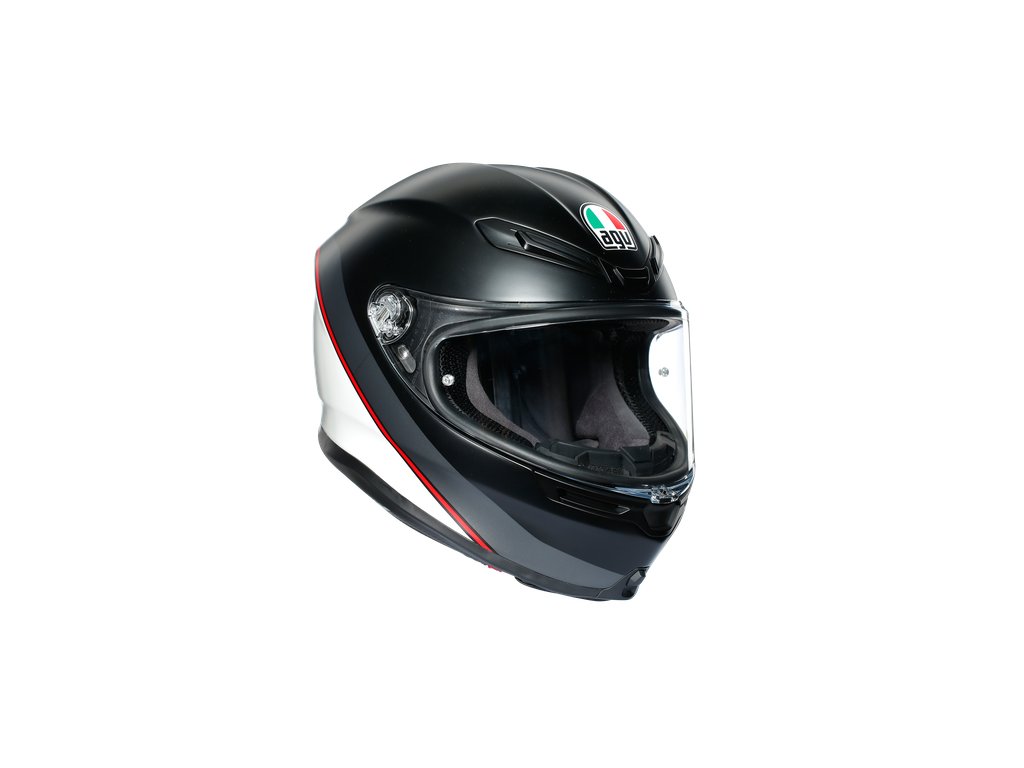 Nová športovo turistická prilba AGV K6. Kvalitná integrálna prilba ktorá Vám umožní užiť si na maximum každú zákrutu. Prilba AGV K6 definuje v prvom rade univerzálnosť - vhodná je pre športové jazdenie na bežných cestách ale je určená aj pre tých ktorí majú radi dlhšie turistické jazdenie. Je vyrobená z Carbon-aramid vlákien vďaka čomu má veľmi nízku hmotnosť a to len 1220g. Prilba AGV K6 má až 5 vetracích otvorov a jeden mimoriadne veľký zadný extraktor vďaka čomu je výborne odvetraná. K tej najvyššej bezpečnosti okrem použitého materiálu prispieva aj QUIC RELEASE systém pre rýchle vytiahnutie bočných lícnic v prípade nehody. Prilba má predprípravu pre AGV ARK bluetooth komunikačný systém. Jazdec má skvelý panoramatický výhľad - 190° na šírku a 85°na výšku. Pri zapínaní prilby výrobca dbal opäť na maximálnu bezpečnosť a preto zvolil 2D krúžky.