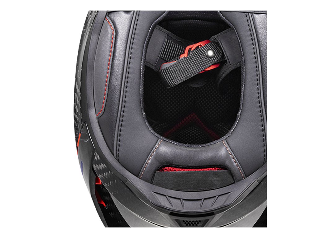 • Ak je popruh zapnutý, prilba sa nesmie dať stiahnuť dolu z hlavy pri ťahaní dopredu.