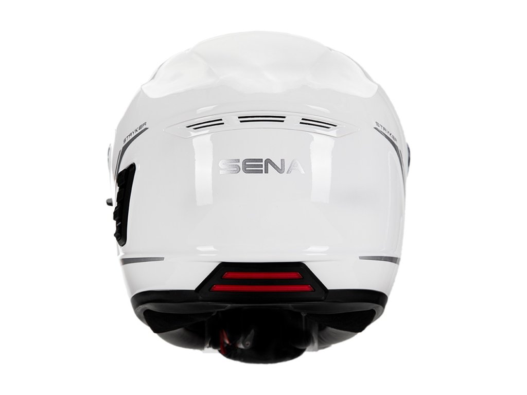 Stryker bol navrhnutý s mnohými praktickými funkciami, vrátane vôbec prvých integrovaných LED zadných svetiel pre motocyklovú prilbu Sena pre lepšiu viditeľnosť jazdca. Stryker s hodnotením DOT a ECE je integrálna prilba s ľahkým kompozitným sklolaminátovým plášťom. Stryker ponúka 7 prieduchov vrátane bradového, horného, dvoch bočných a troch výfukových. Prilba je vybavená výsuvnou slnečnou clonou, ktorá chráni jazdca pred nadmerným oslnením počas jazdy. Remienok na bradu s mikro-račňou udržuje prilbu pohodlne a bezpečne na mieste počas jazdy.