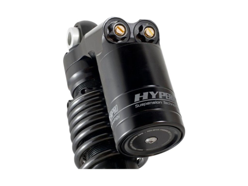 Typ RESERVOIR - Je najnovším výdobytkom neustáleho zlepšovania a hľadania inovatívnych technológií. Tento tlmič je jedným z najlepších tlmičov s akým sa môžete na svetovom trhu stretnúť. Výhody tohto tlmiča nie sú len v jeho dokonalom spracovaní ale aj v možnosti použitia na mnoho modelov motocyklov. Má možnosť 30 klikov útlmu kompresie rozdelenej do HIGH SPEED Compresion a LOW SPEED Compresion tiež v rozsahu 30 klikov. Plus 50 klikov spätného REBOUND útlmu dáva tomuto tlmiču obrovský rozsah tlmenia a jemnosť nastavenia. Je vyrábaný so 16mm tyčou piesta z 42CrMo4 s karbón nitridovou povrchovou úpravou čo mu dodáva stabilitu, tie najlepšie tlmiace účinky a dlhú životnosť bez údržby . Je vyrobený tak aby výmena struny so správnym náradím bola otázkou pár sekúnd. Hyperpro dodáva k týmto tlmičov za príplatok aj HPA / Hydraulic Preload Adjuster/ je to hydraulický mechanizmus ktorým je ovládané predpätie struny tlmiča len jednoduchým otočeným ovládacieho prvku. Taktiež k možnostiam výbavy tlmiča patrí aj možnosť voliteľnej dĺžky. Tlmiče sú štandardne osadené progresívnou pružinou no lineárne sú tiež k dispozícii.
